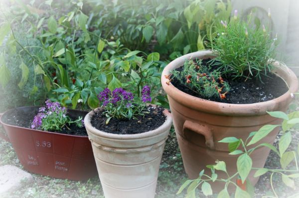 以前牧場でいただいた、ミルクアルミ缶にお花を植えてみました。