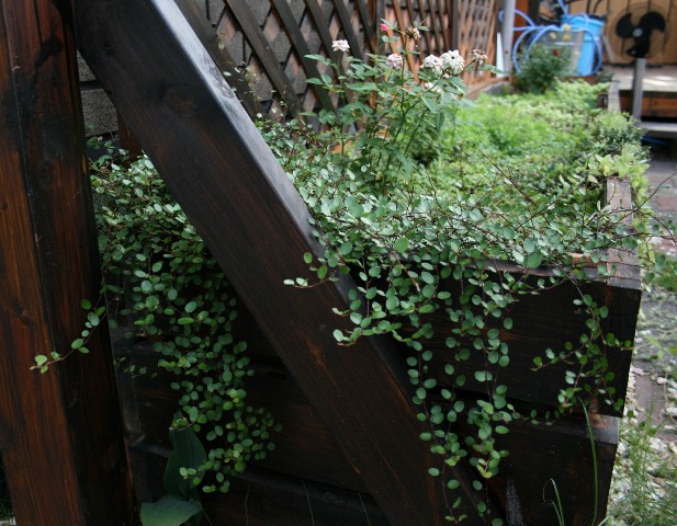 そのアーチの下の木箱にはワイヤープランツがわんさかさいてくれました。