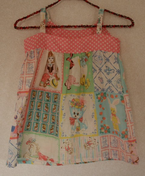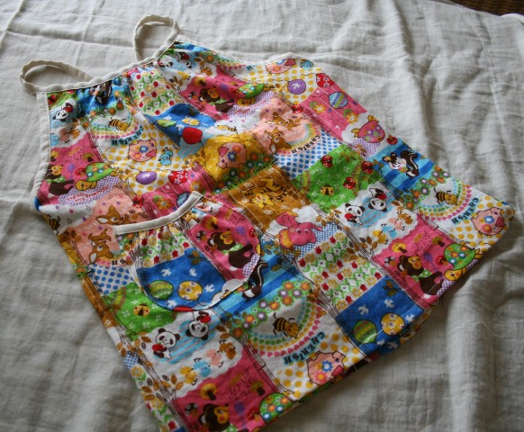 こちらはエプロンワンピ~ス! 娘に作ったのですが、あまり気に入ってくれていません。涙 もっとカワイイくまさんとかの絵の方がいいのかな?? 私的にはスキなんだけどな~・・・・