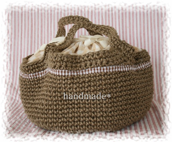 麻ひもばっくです! ピクニックなどに最適な大きさです! これまた自分用に作ったのですが・・・・ かわいかったので、出品しました。 こちらもお嫁に行っちゃいました。 次は何作ろうかと悩み中です・・・・